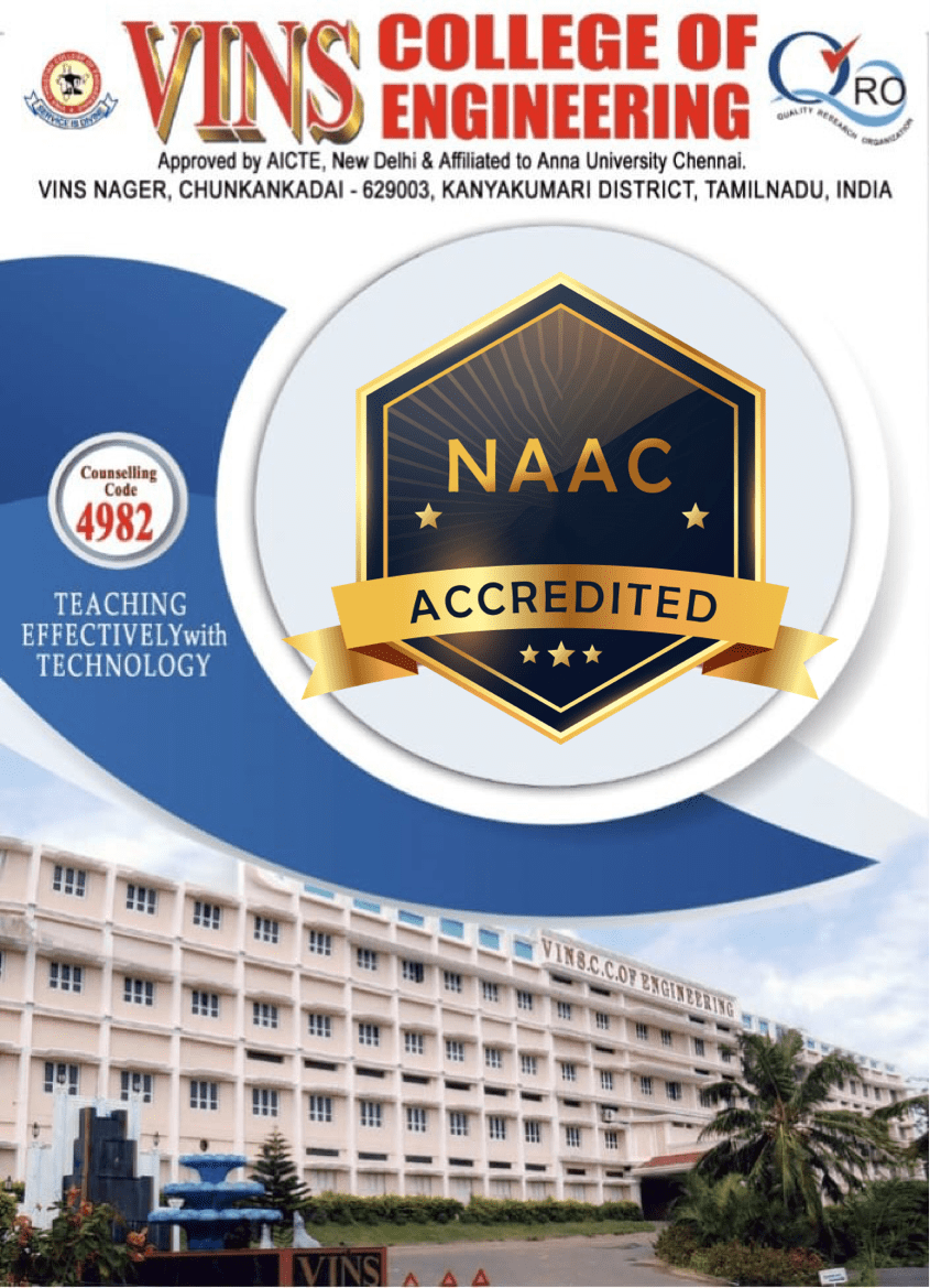 Welcome to Vins Christian College of Engineering. With VINS, be prepared to put yourself on the anvil for budding professionals. VINS believes in the power of imagination and innovation. Those who dare to dream reach the star is VINS moving philosophy.